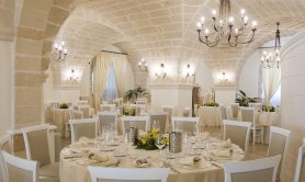 Una sobria ricercatezza, coerente con la più autentica tradizione architettonica salentina, caratterizza la “Sala Trono”: il maestoso salone dei ricevimenti…