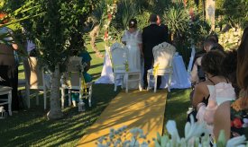 Romantici sentieri vi condurranno lungo i diversi angoli verdi dell’immenso parco: un rigoglioso manto di prato all’inglese, un viale adornato di rose e la natura, con i suoi profumi e i suoi caldi e vivaci colori, un’atmosfera raffinata e romantica per lo scambio delle vostre promesse.