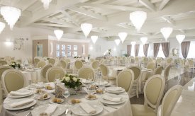 Ambienti arredati con arte e stile, impreziositi da imponenti lampadari in argento e cristallo, perfetti per regalare uno scenario da favola a qualsiasi cerimonia.